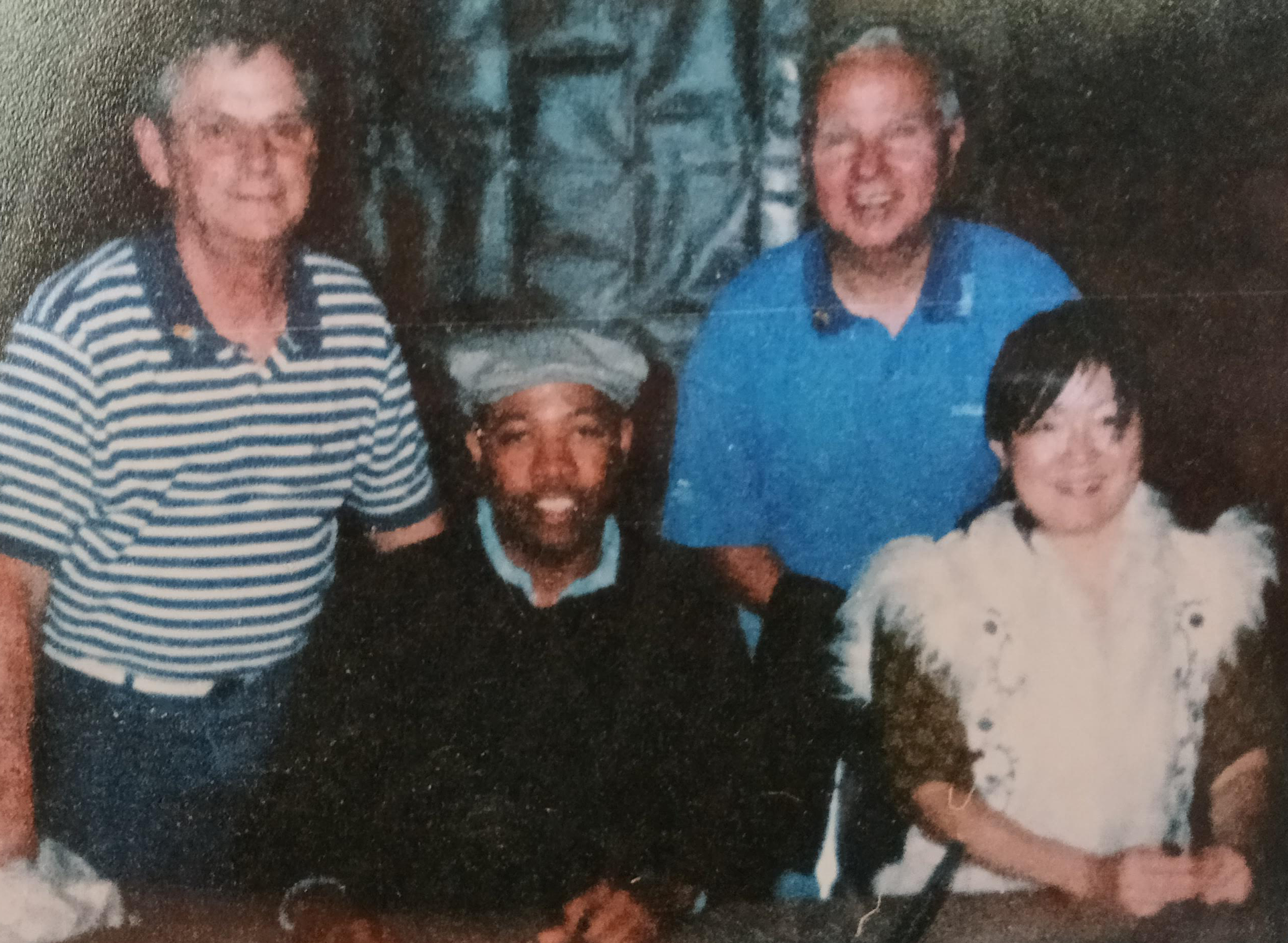 Gary Trowbridge and Frank Benedetti with unidentified man and Margaret Cho