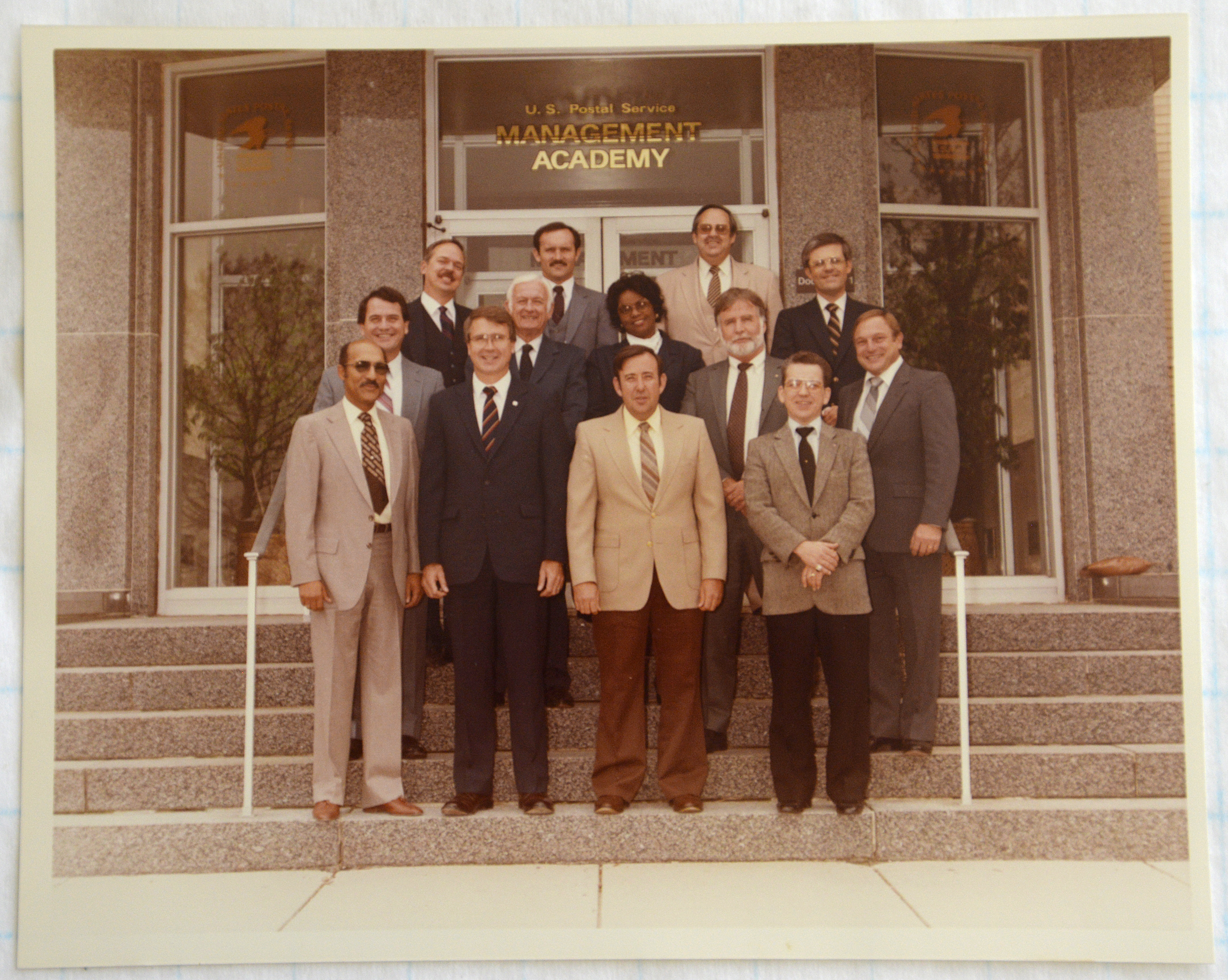 Enola Mixon is the only woman and only African-American in this photograph of a management class held by the United States Postal Service.
