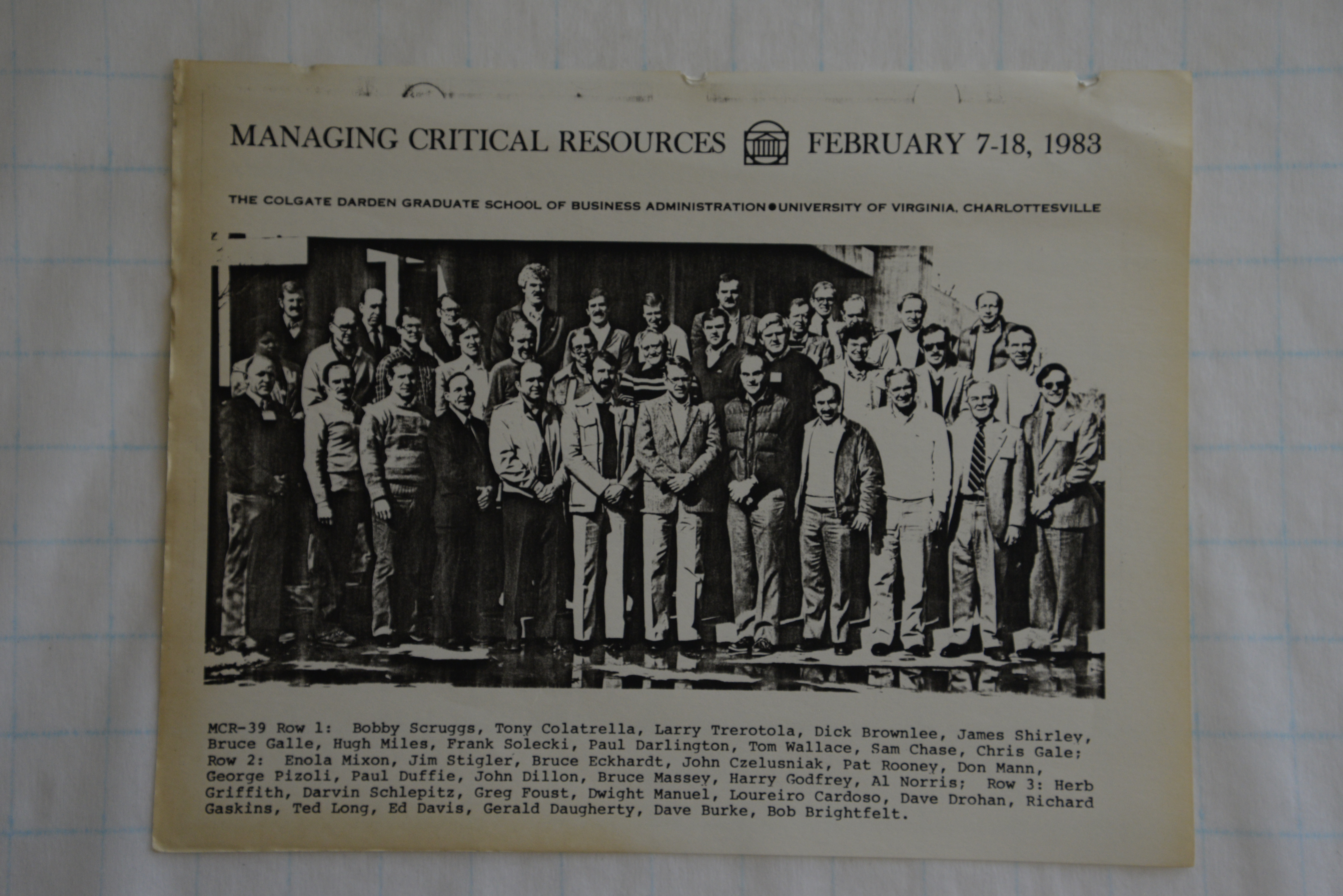 Enola Mixon is shown, second row far left, in this class photograph of the Colgate Darden Graduate School of Business Administration, at the University of Virginia in Charlottesville.