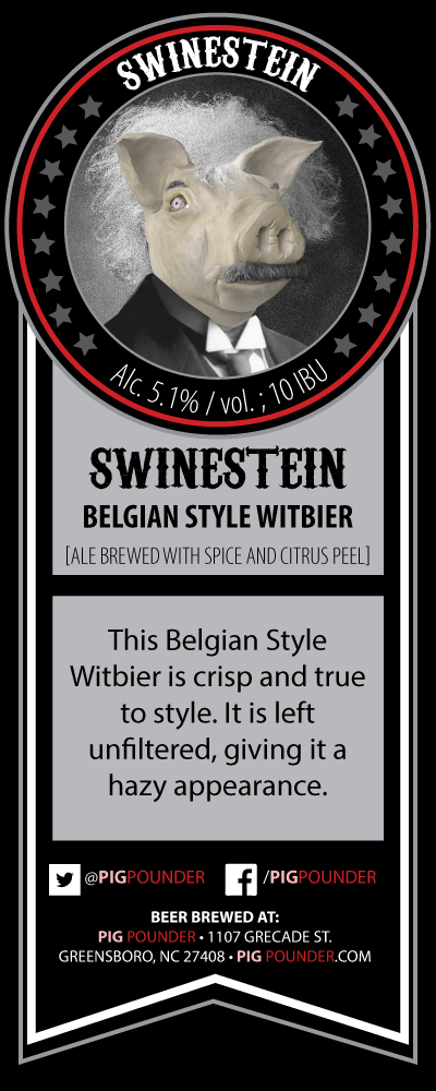 Pig Pounder Brewery Swinestein Witbier About [1/2 gallon label]