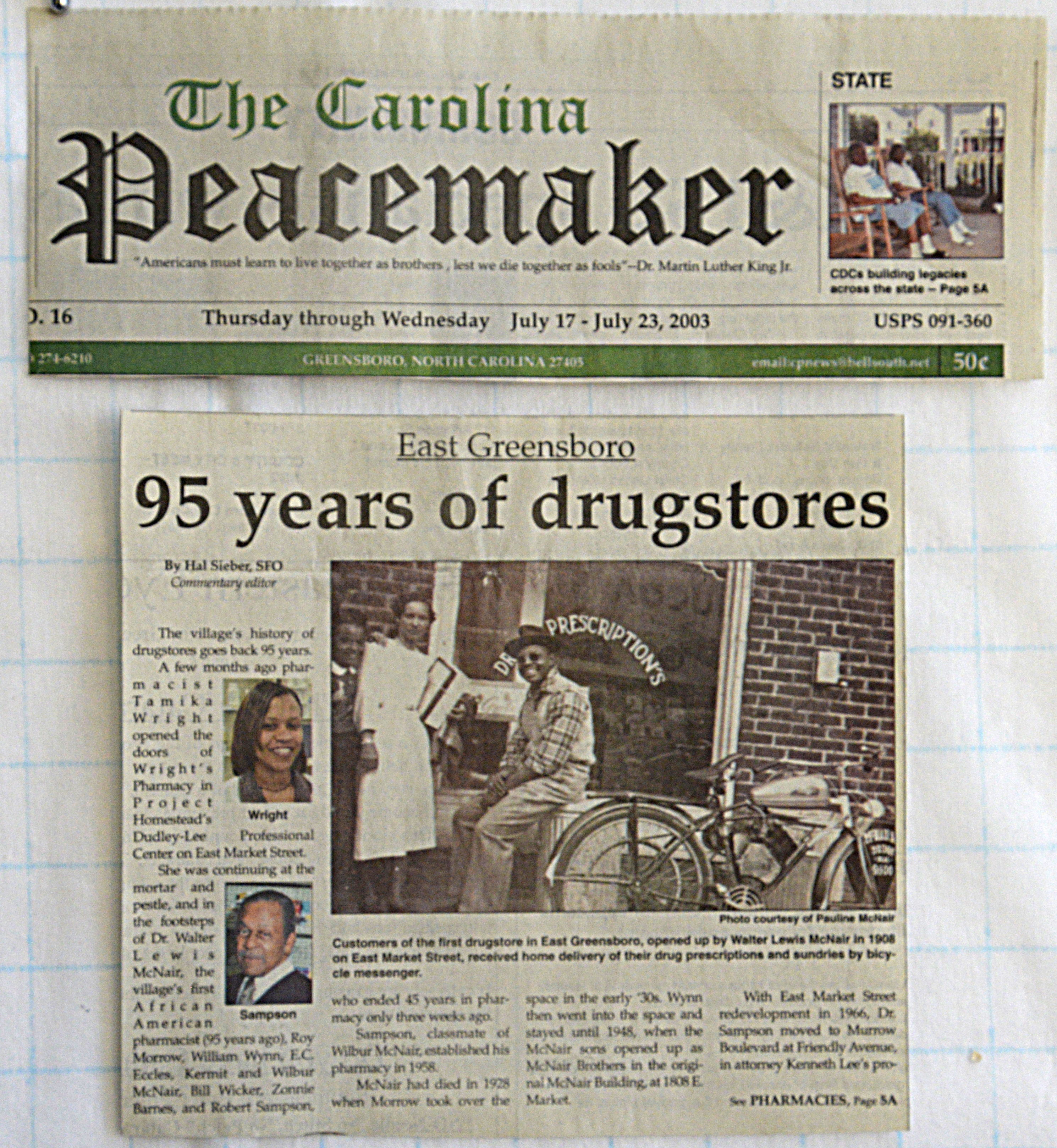 This article discusses various druggists and drugstores in East Greensboro, including W.L. McNair.