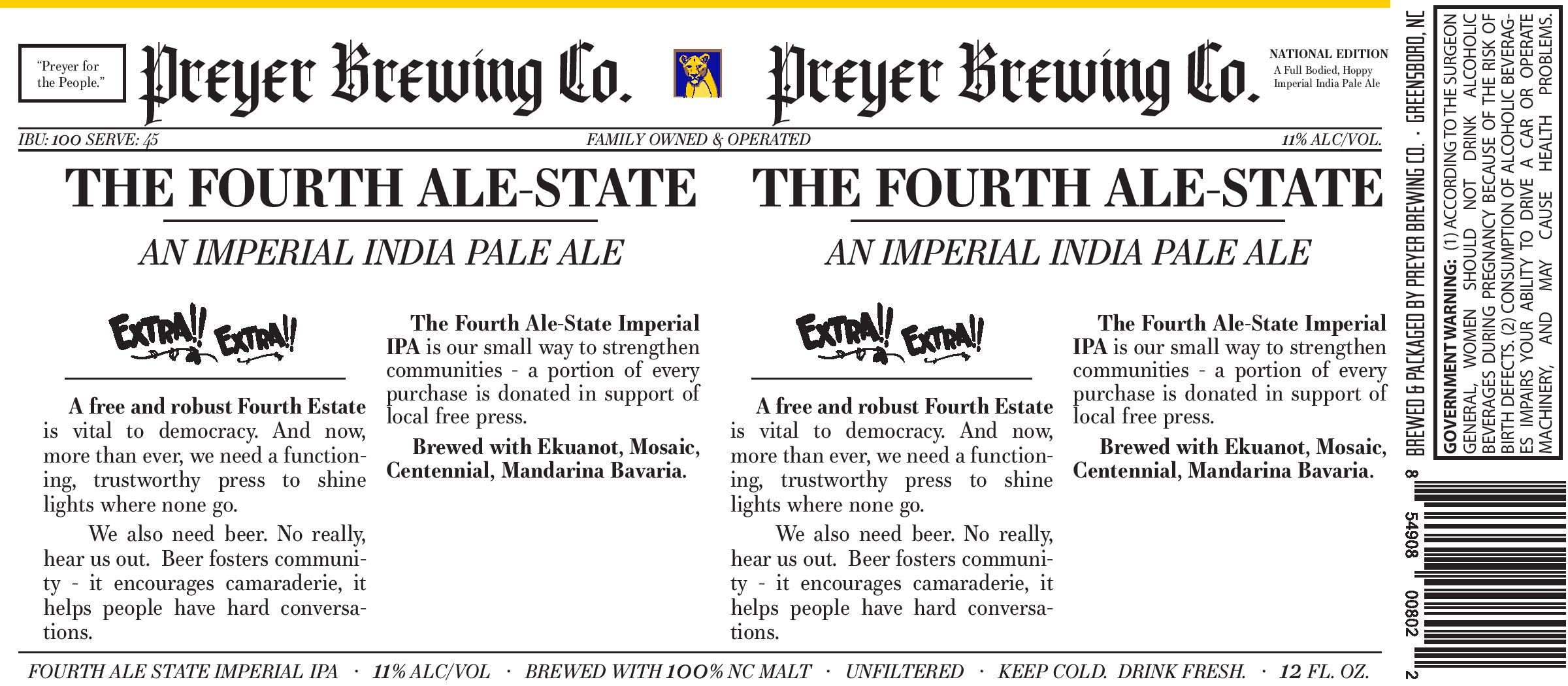Preyer Brewing Co. Fourth Ale-State [label]