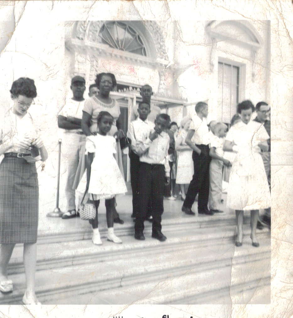 A family poses on the steps of the White House, in Washington, D.C., on a family trip.