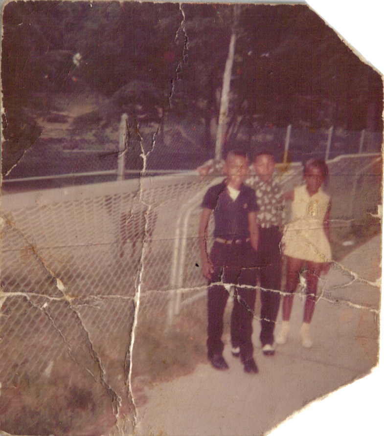 Runa Caldwell, James Pressley and Loretha Foushee in front of a fence
