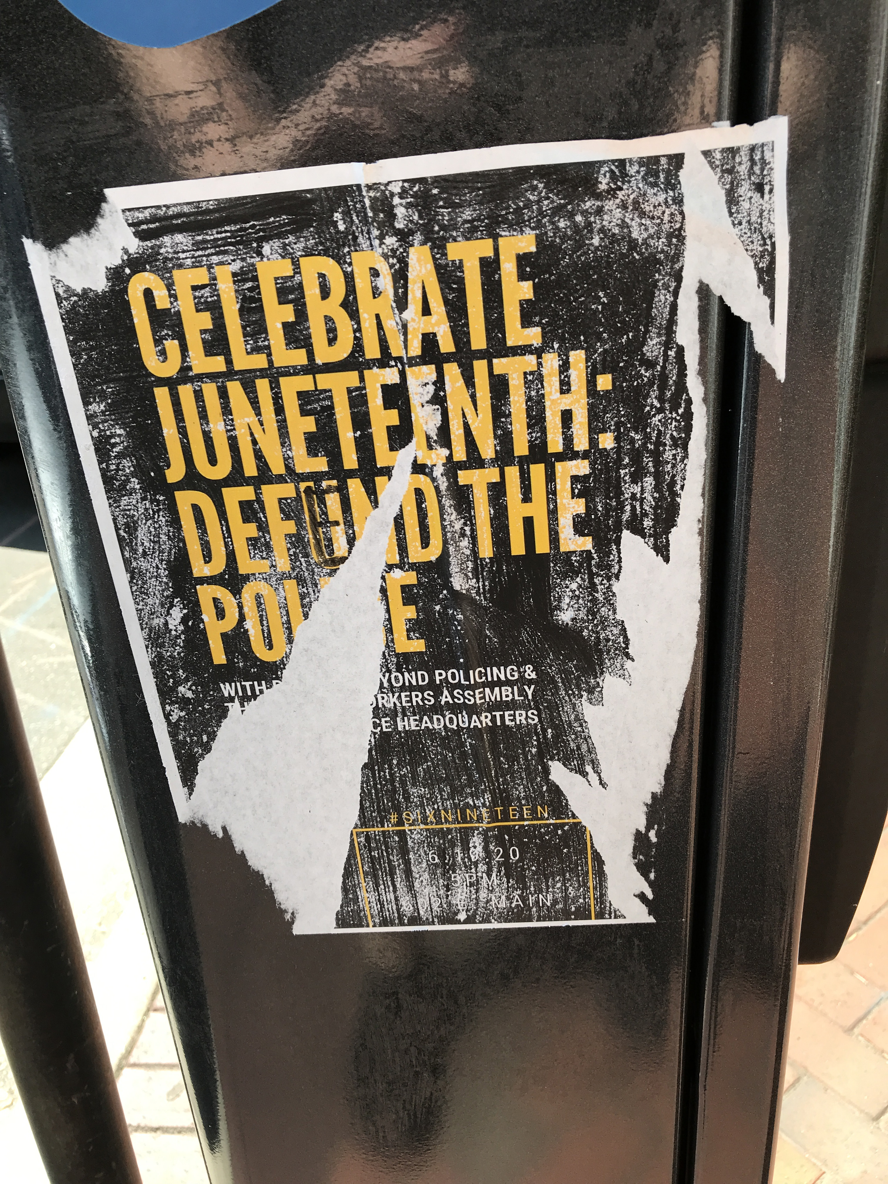 Flier on West Main Street in Downtown Durham during the Black Lives Matter and George Floyd demonstrations in 2020.