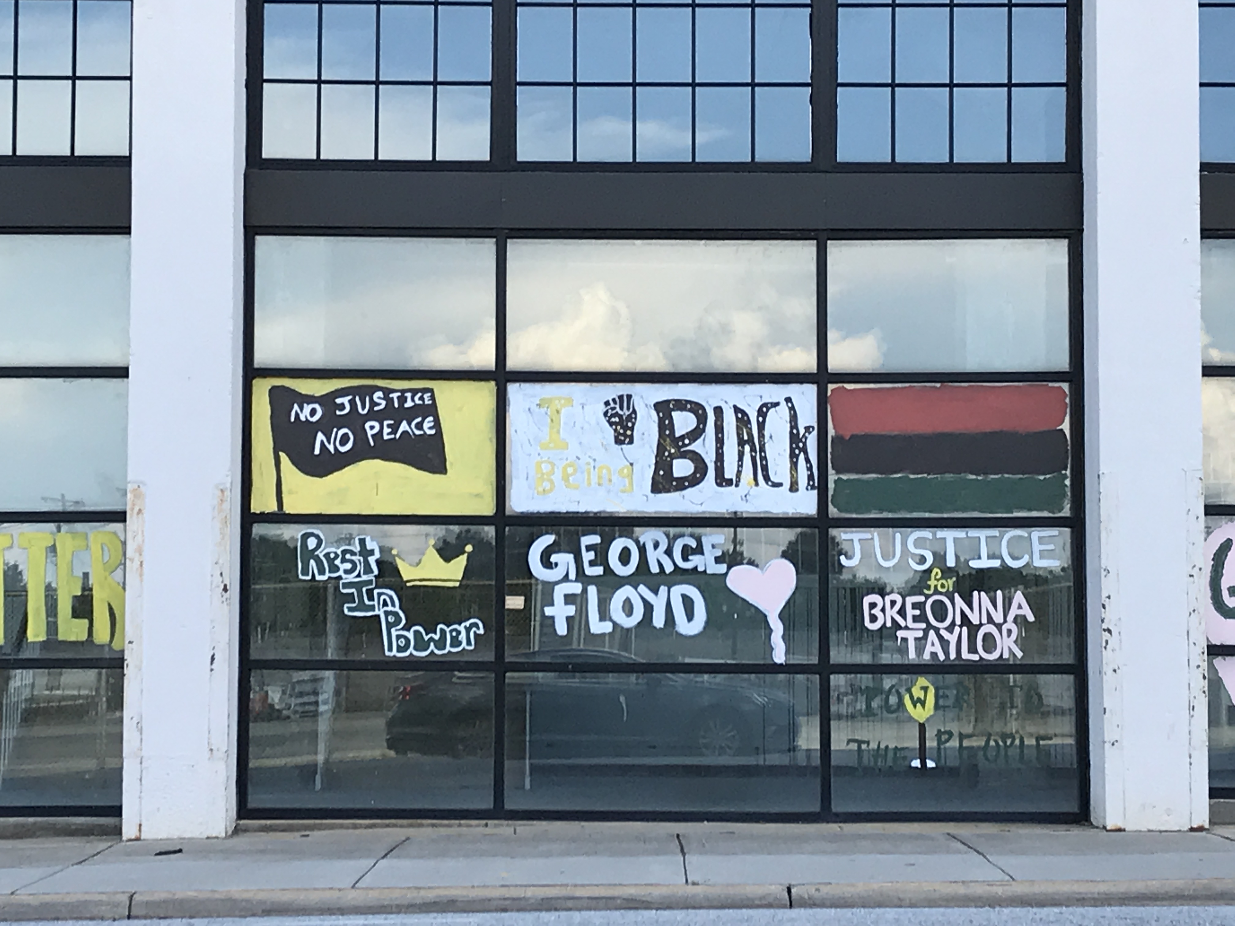Protest art created on West Main Street in Downtown Durham during the Black Lives Matter and George Floyd demonstrations in 2020.