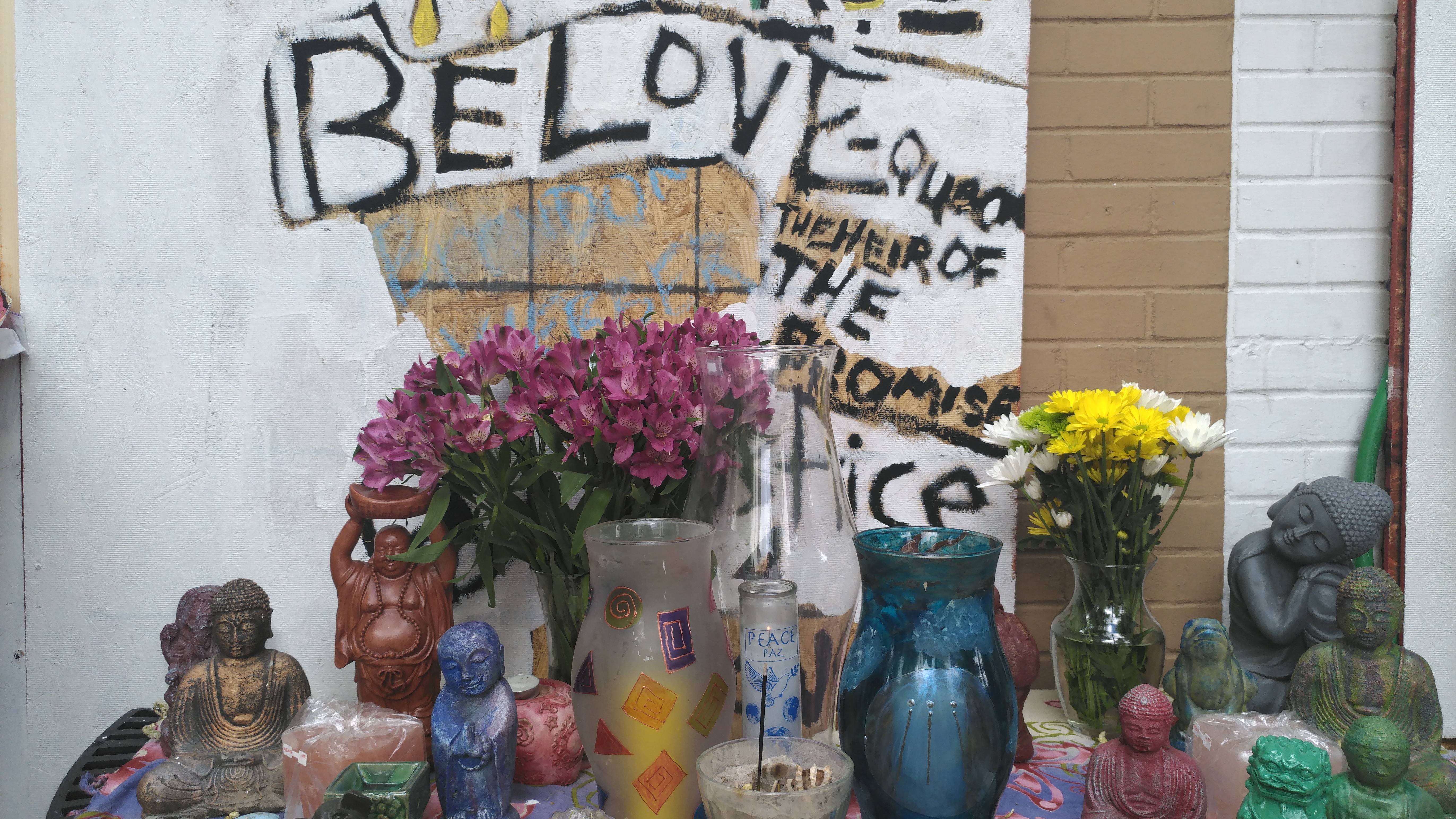 Protest art created on South Elm Street in Downtown Greensboro during the Black Lives Matter and George Floyd demonstrations in 2020.