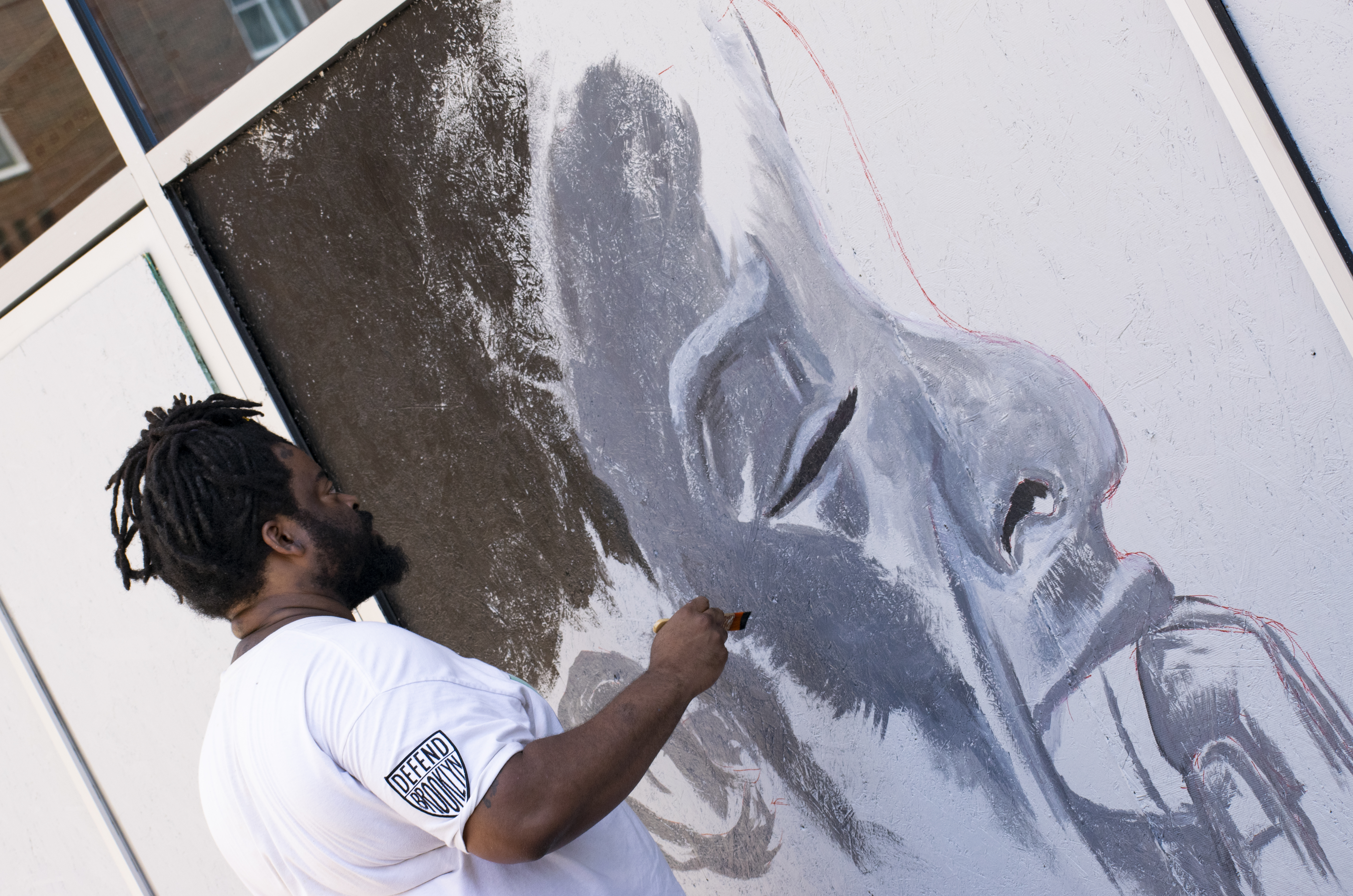 Artist Bobby Danger creates a mural in downtown Raleigh NC.