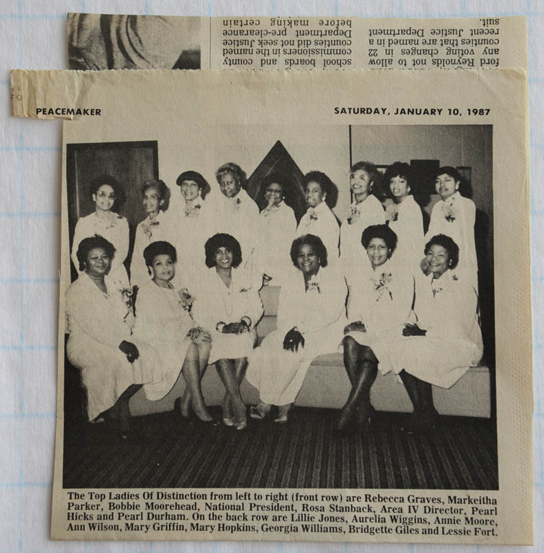 Newspaper clipping of photo of Top Ladies of Distinction, with names of the all the women, including Pearl Durham Hicks on the front row.