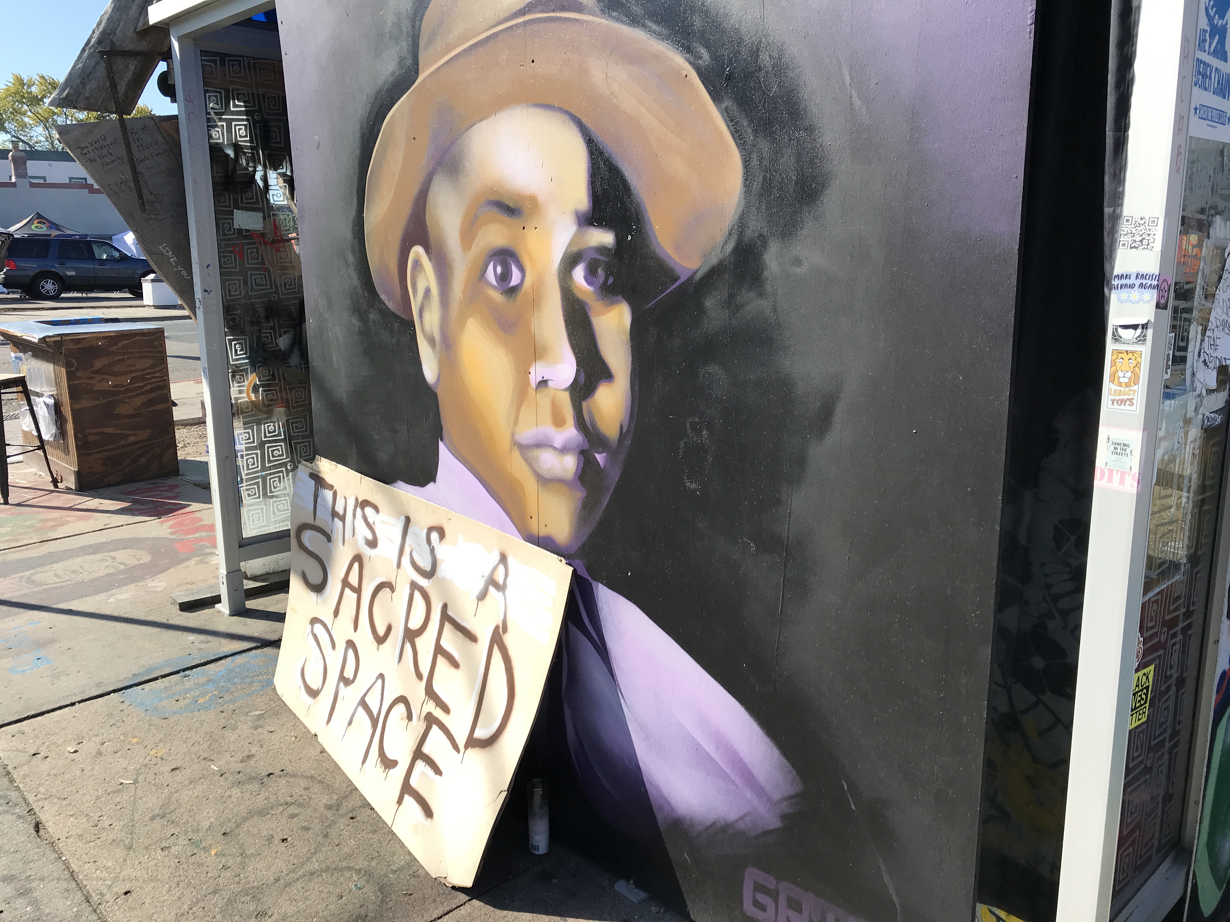 Art and memorials at George Floyd Square, East 38th Street and Chicago Avenue in Minneapolis.