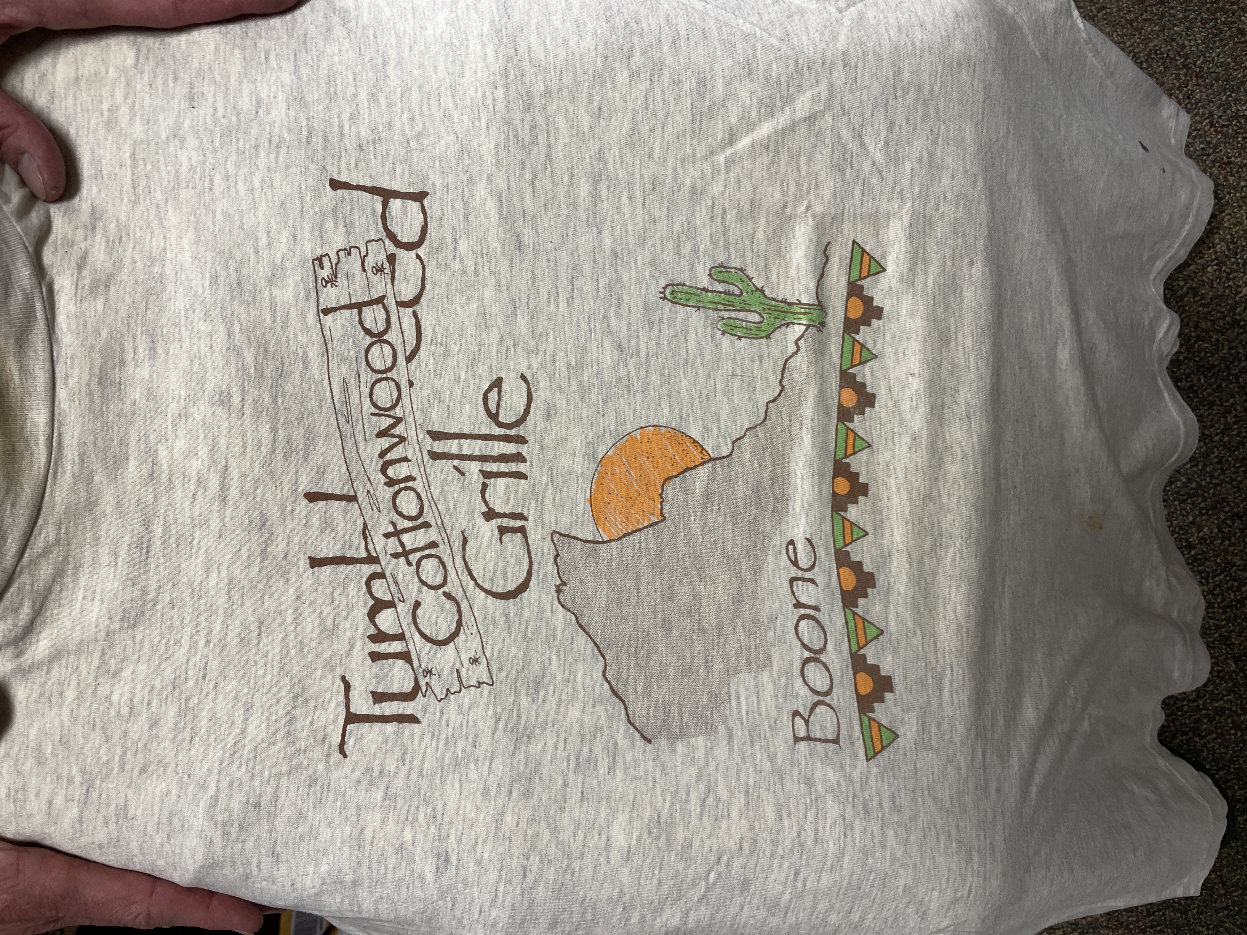 T-shirt advertising Cottonwood Grille in Boone, reflecting name change from Tumbleweed Grille..