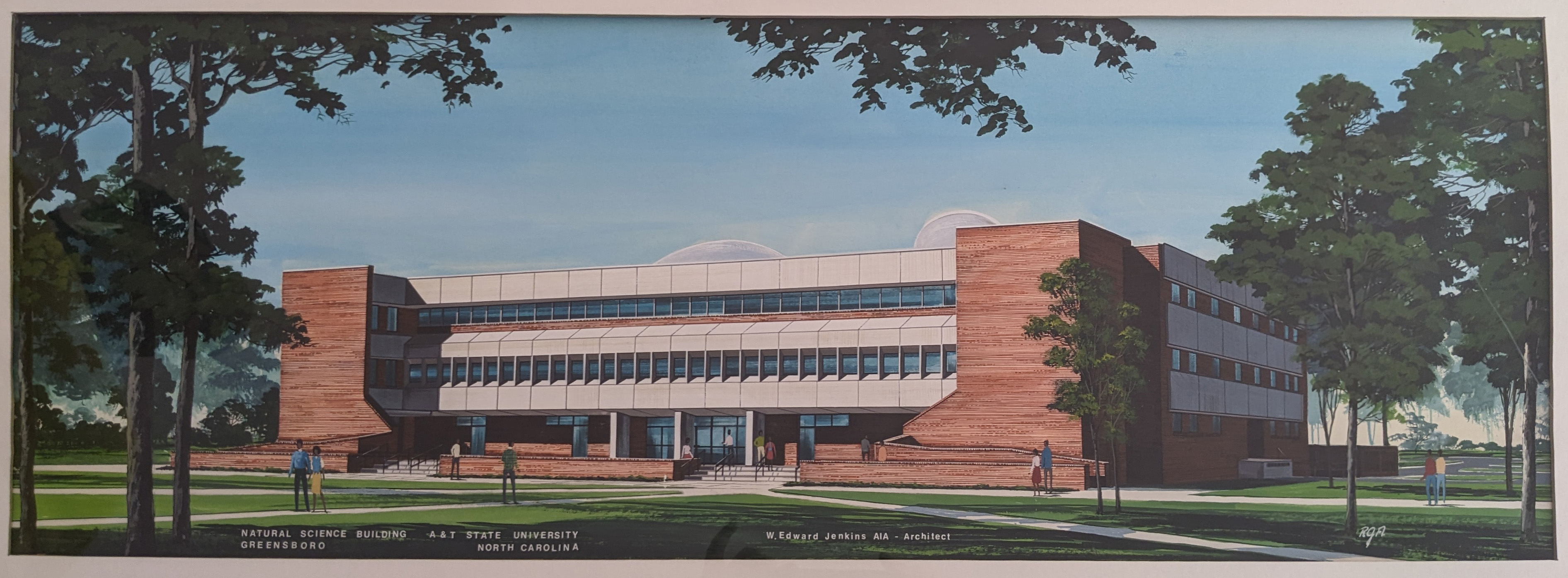 Color rendering of the Natural Science Building, now Marteena Hall, on the campus of N.C. A&T State University.