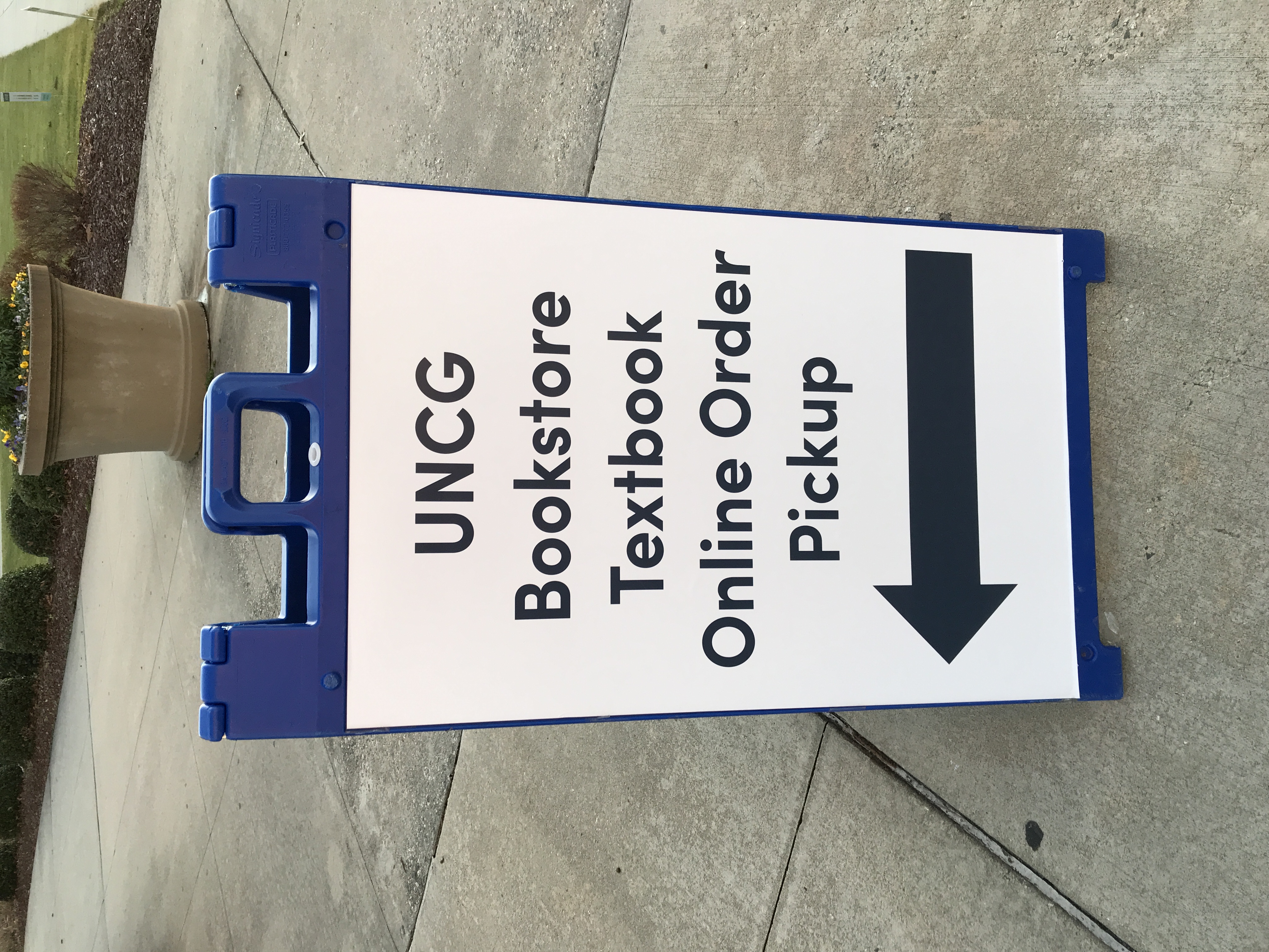 UNCG bookstore curbside pickup signage