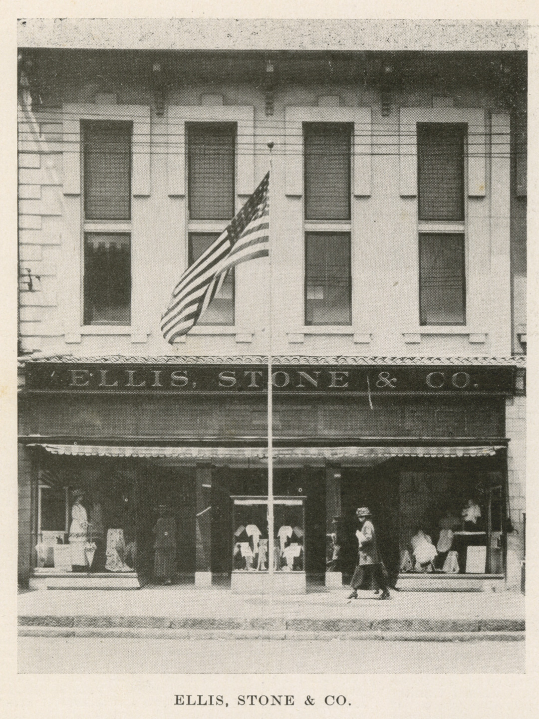 Exterior of the Ellis, Stone and Company store at 224-226 South Elm Street in Greensboro. Ellis Stone moved across Elm Street to a large new facility in 1949 and was later acquired by Thalhimer's of Richmond. After several mergers, the company is now part of Macy's.