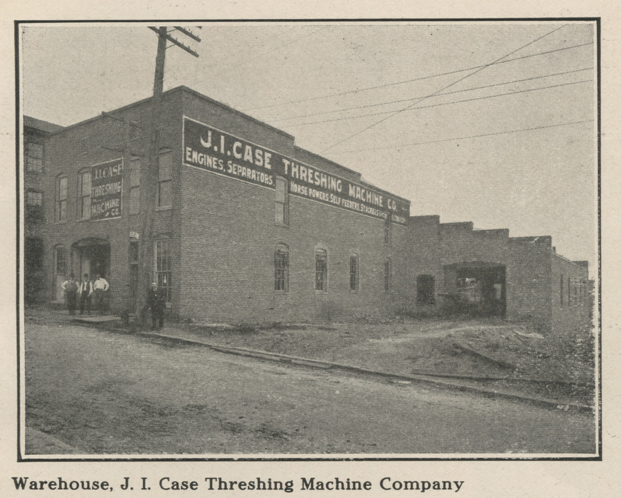 Exterior of the J.I. Case Threshing Machine Company, located at an unspecified address in Greensboro. Image taken from "The Gate City, Greensboro" (1910).