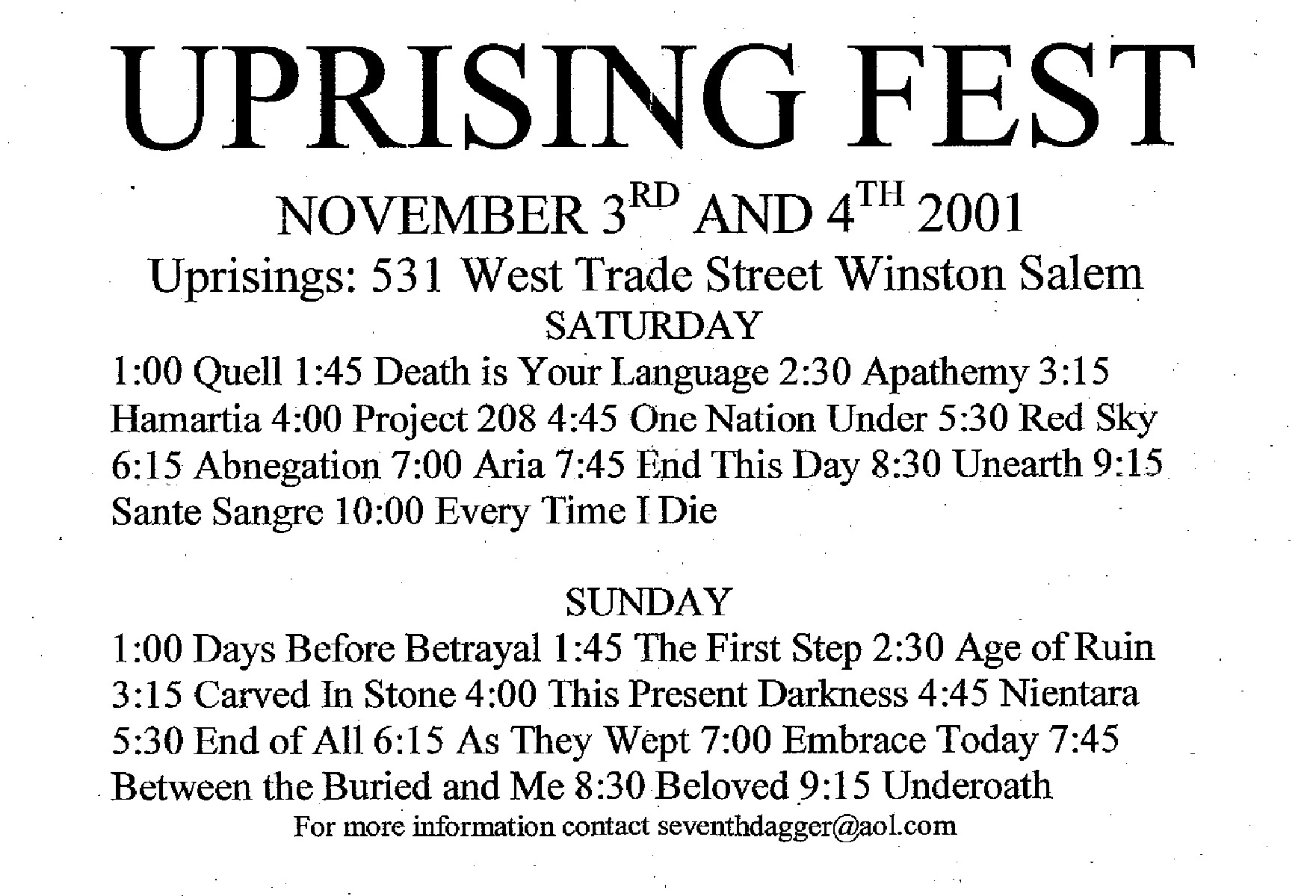 2001-11-03 - Uprisings, Winston-Salem, N.C.