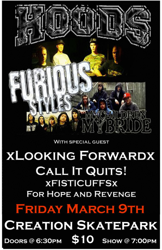Hoods, Furious Styles, My Children My Bride, Xlooking Forwardx, Call It Quits!, Xfisticuffsx, For Hope And Revenge