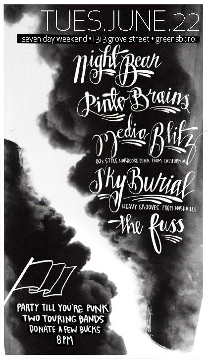 Nightbear, Pinto Brains, Media Blitz, Sky Burial, Fuss