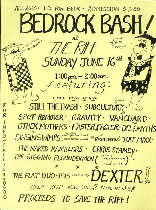 Still The Trash, Subculture, Spot Remover, Gravity, Vanguard, Othermothers, Faster Faster, Delsmyths, Singing Wimps, Tuff Mixx, Naked Ramblers, Chris Stamey, Gigging Floundermen, Flat Duo Jets