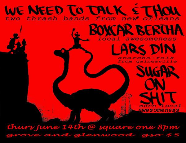 We Need To Talk, Thou, Boxcar Bertha, Lars Din, Sugar On Shit