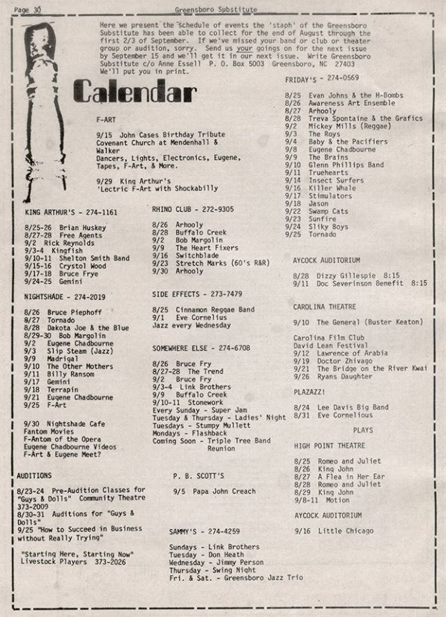 1982-09-02 - Nightshade Cafe, Greensboro, N.C.