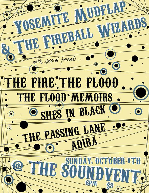 Yosemite Mudflap And The Fireball Wizards, Fire The Flood, Flood Memoirs, Shes In Black, Passing Lane, Adira