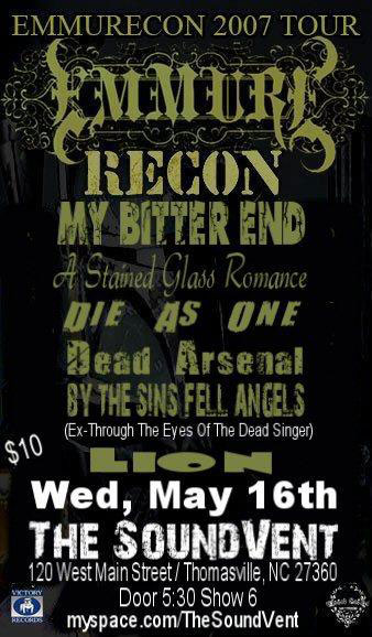 Emmure, Recon, My Bitter End, A Stained Glass Romance, Die As One, Dead Arsenal, By The Sins Fell Angels, Lion