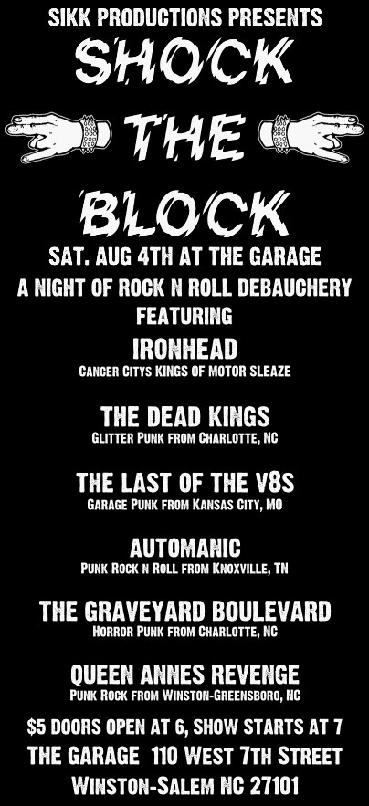 Ironhead, Dead Kings, Last Of The V8s, Automaniac, Graveyard Boulevard, Queen Anne's Revenge