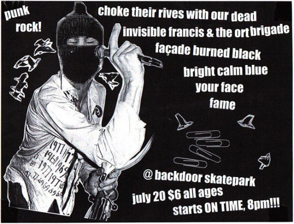 Choke The Rivers With Our Dead, Invisible Francis & The Ort Brigade, Facade Burned Black, Bright Blue Calm, Your Face, Fame