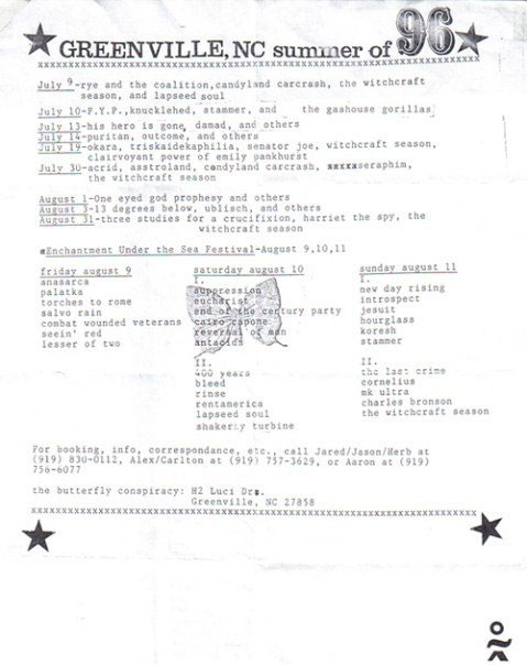 New Day Rising, Introspect, Jesuit, Hourglass, Koresh, Stammer, Last Crime, Cornelius, Mk Ultra, Charles Bronson, Witchcraft Season