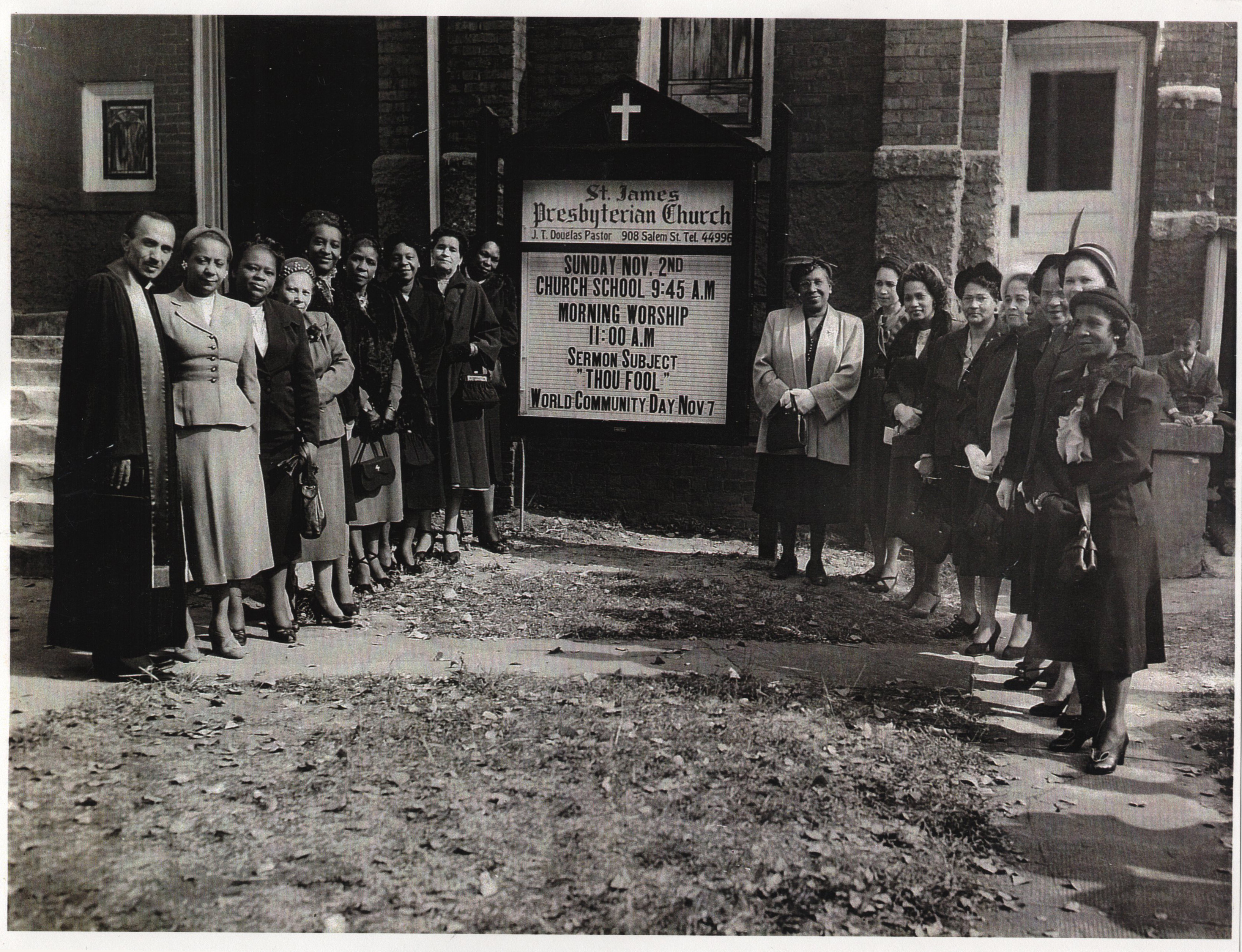 Picture of Reverend Douglas with the women of Saint James Presbyterian Church.