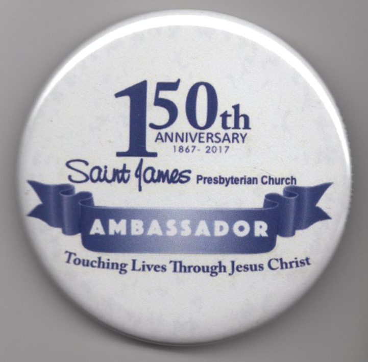 Saint James Presbyterian Church 150th anniversary ambassador buttons