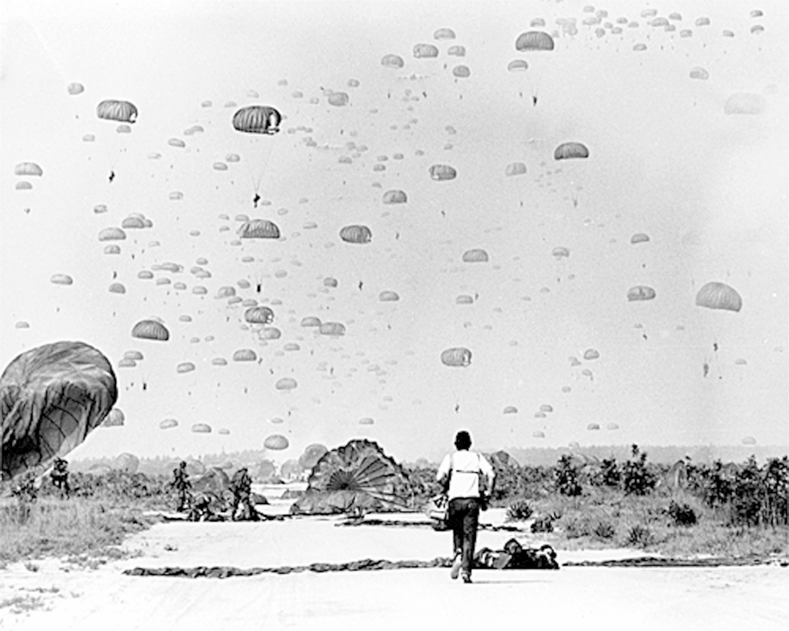 This photograph shows a jump with the 82nd Airborne Division at Eglin Air Force Base in Valparaiso, Florida, circa 1980.