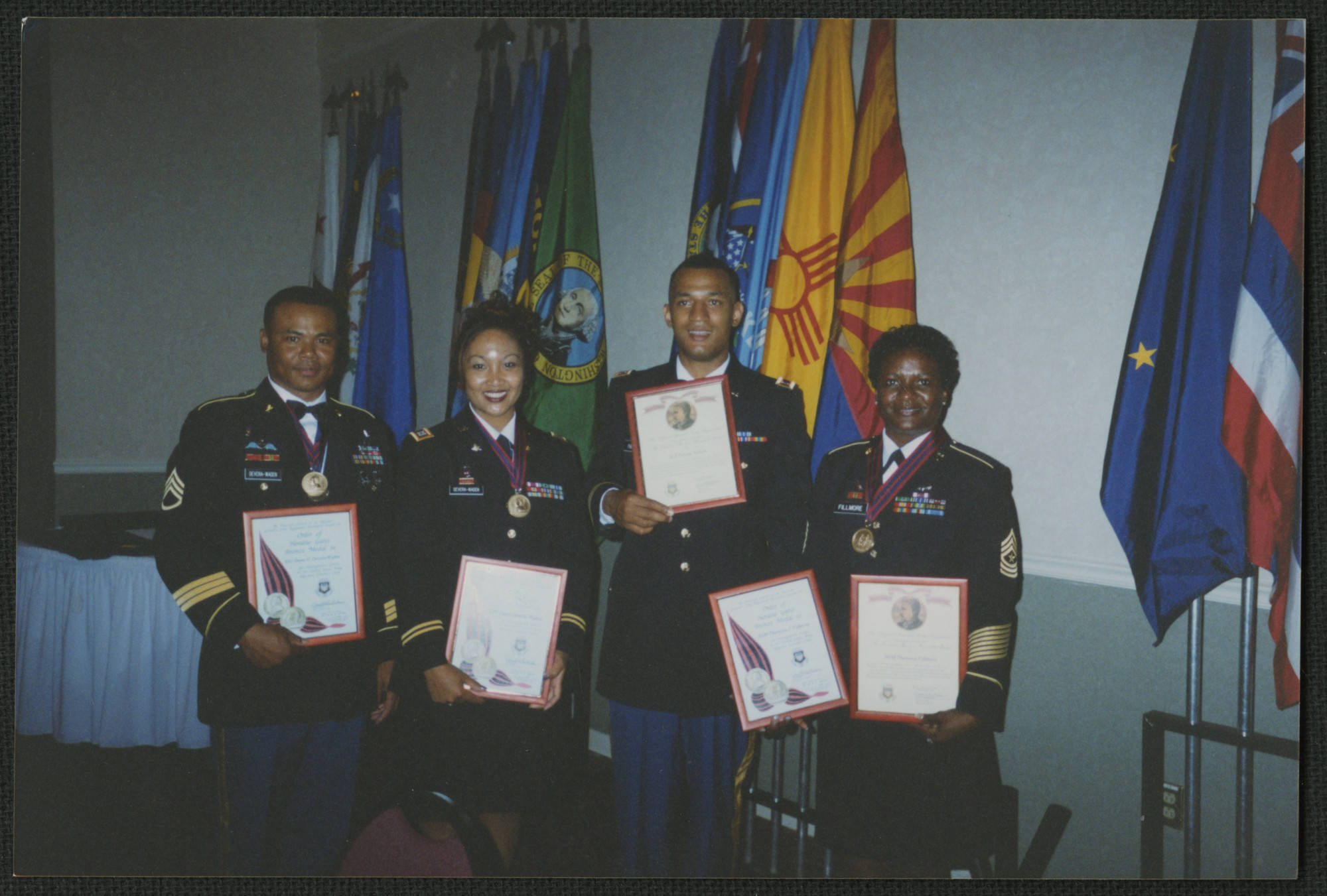 Theressa Jeanne Fillmore, on far right, poses at the 2003 Regimental Ball at Fort Bragg.