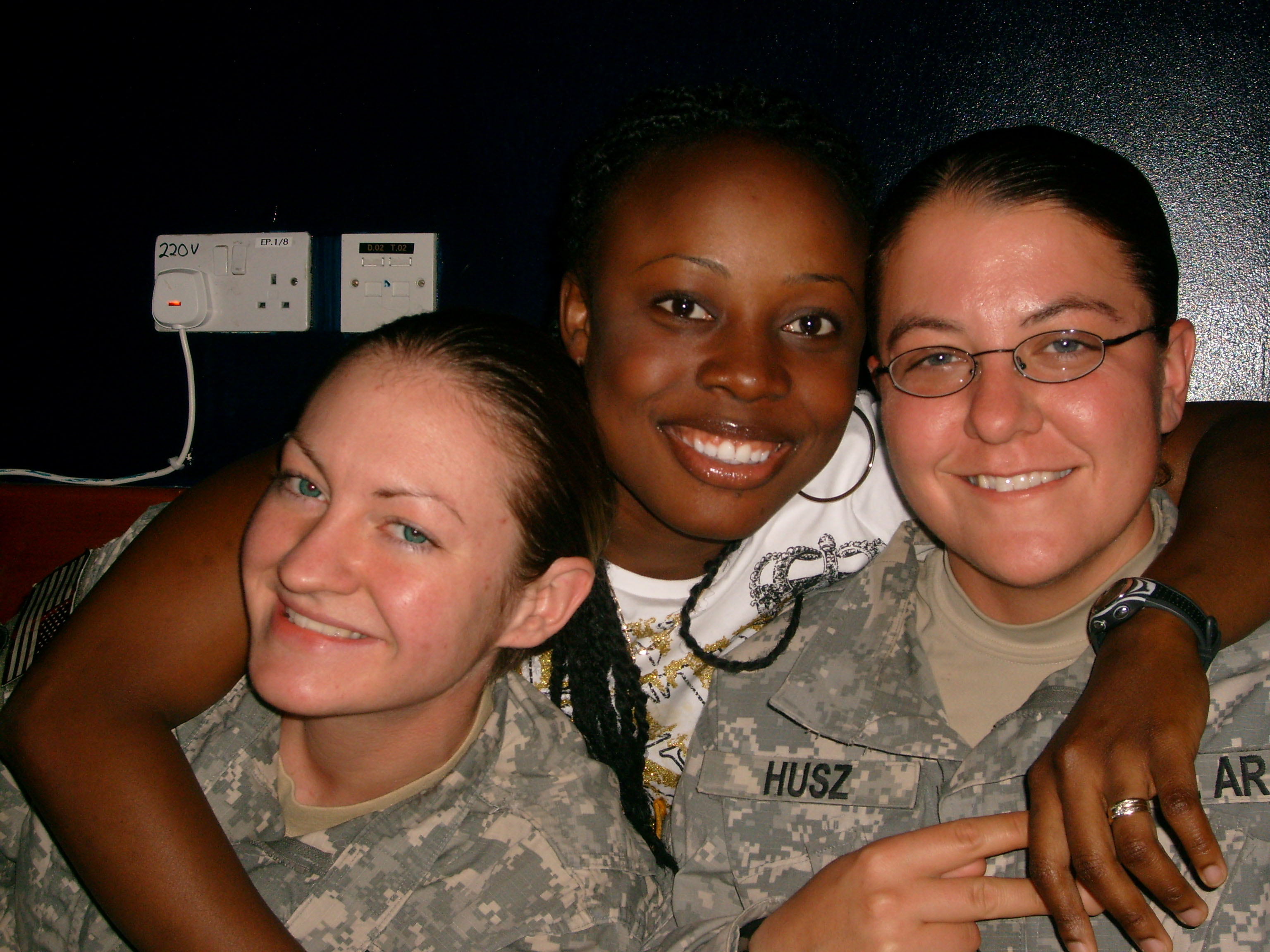 Amanda D. Westfall, on left, in Qatar, 2008]