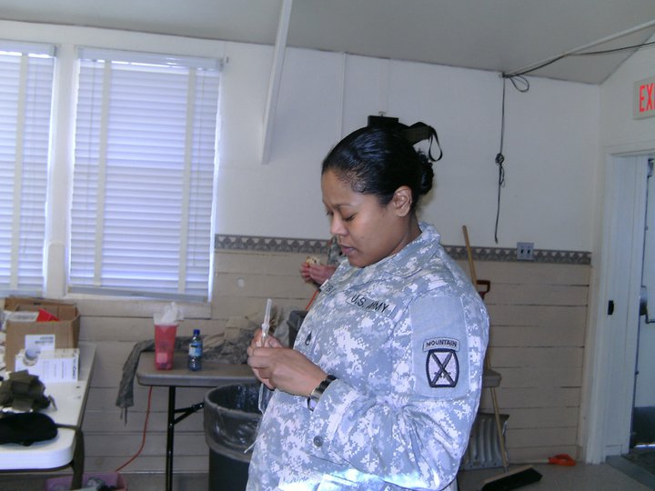 Caption reads "1st Pregnancy, Teaching a Combat Lifesaver (CLS) Course."