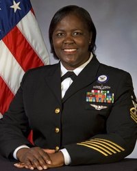 Naval Counselor Master Chief Petty Officer Pollyanna Neely wearing her Dress Blue uniform, 2004