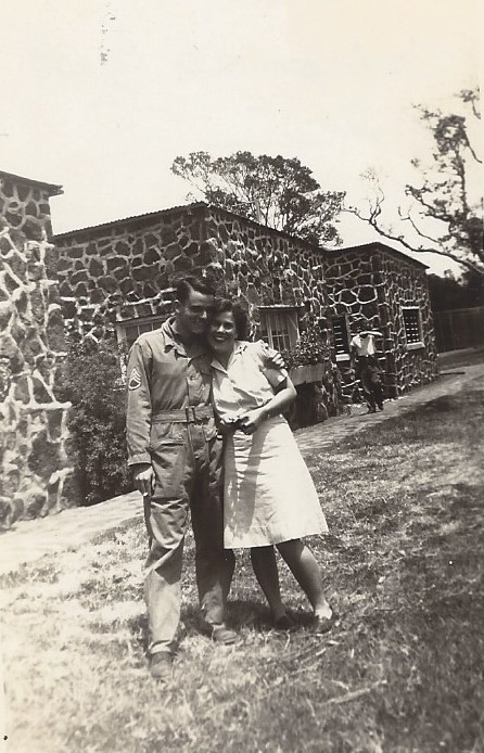 Bess Hambright Phifer and Marriott at Hawaii National Park in front of a residence hall.