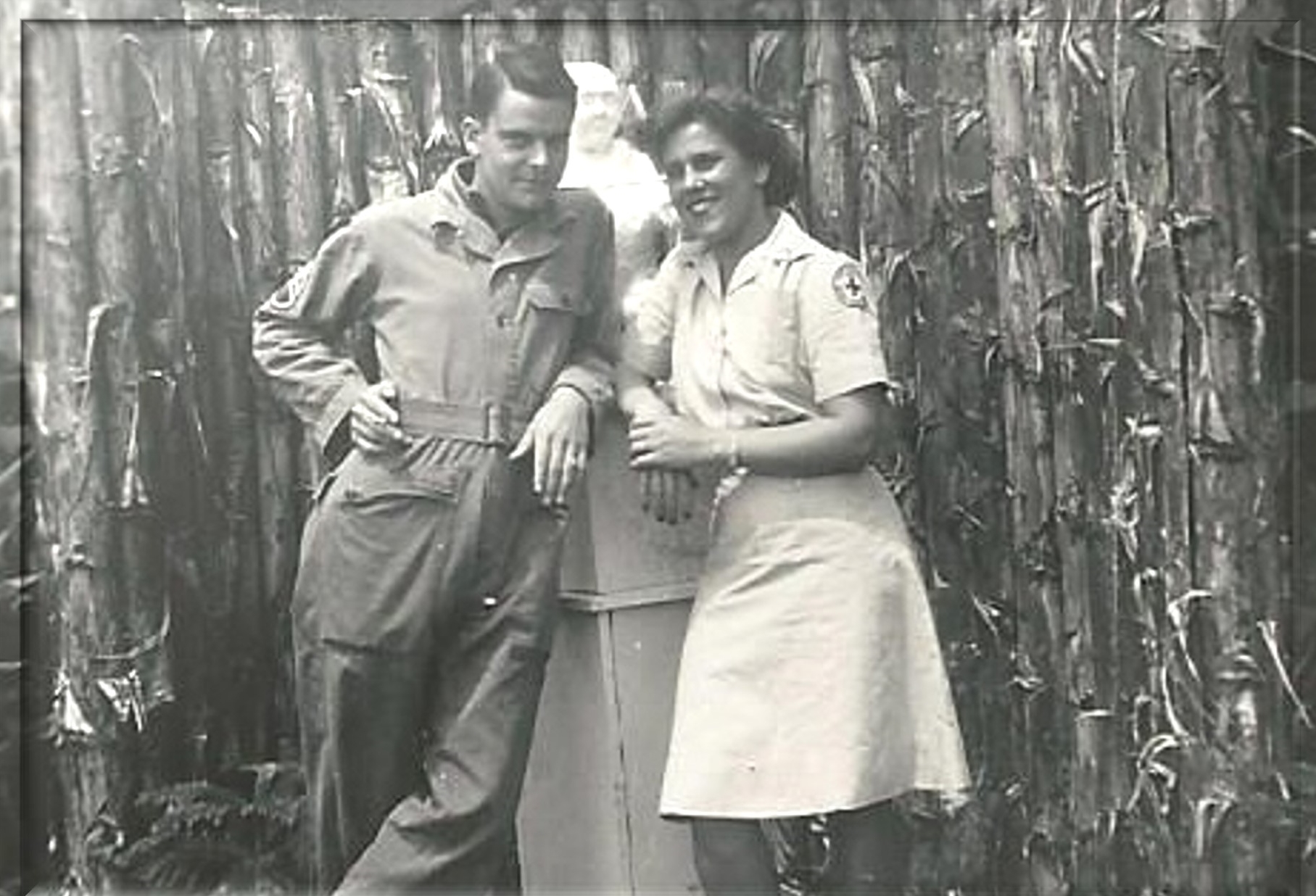 Bess Hambright Phifer and Marriott in front of statue in Hawaii.
