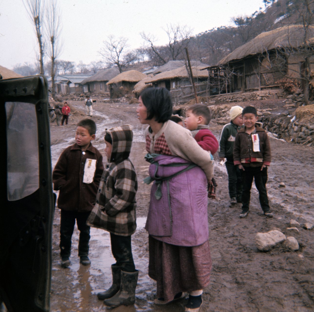 South Koreans in the Korean countryside, in 1969, after the U.S. Army jeep that Linda Jones was driving in broke down.