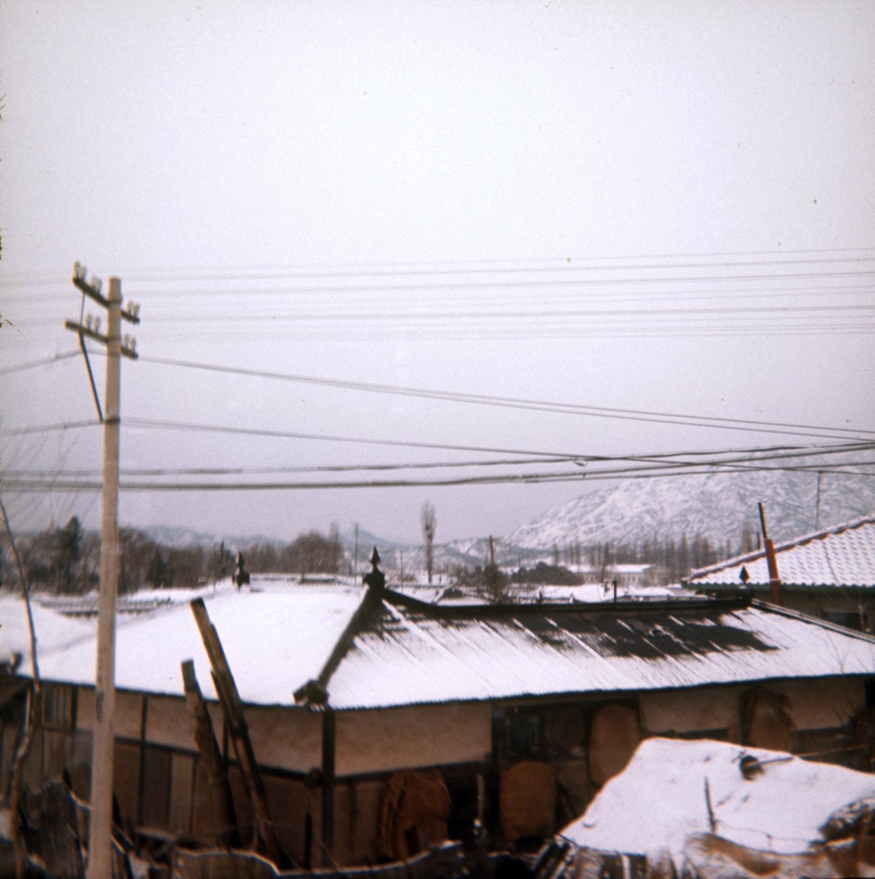 Rooftops in the winter in Uijongbu, South Korea in 1969.
